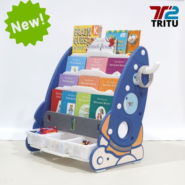 Selain itu, rak buku roket 5 layer juga di lengkapi oleh 3 storage yang bisa di gunakan untuk merapihkan mainan nya juga.