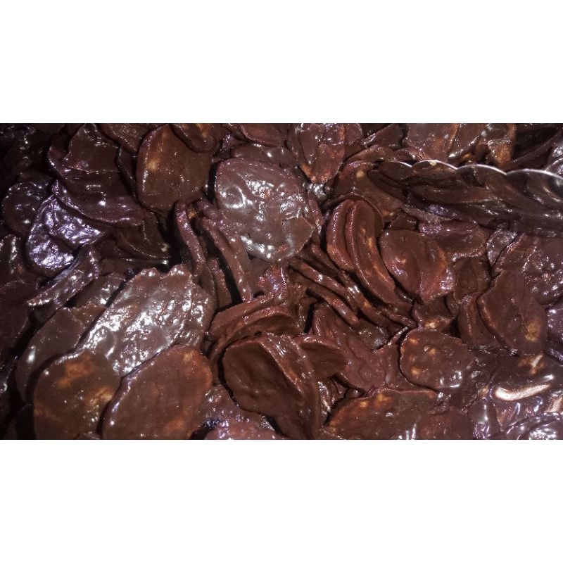 keripik pisang yang dilumuri cokelat melimpah