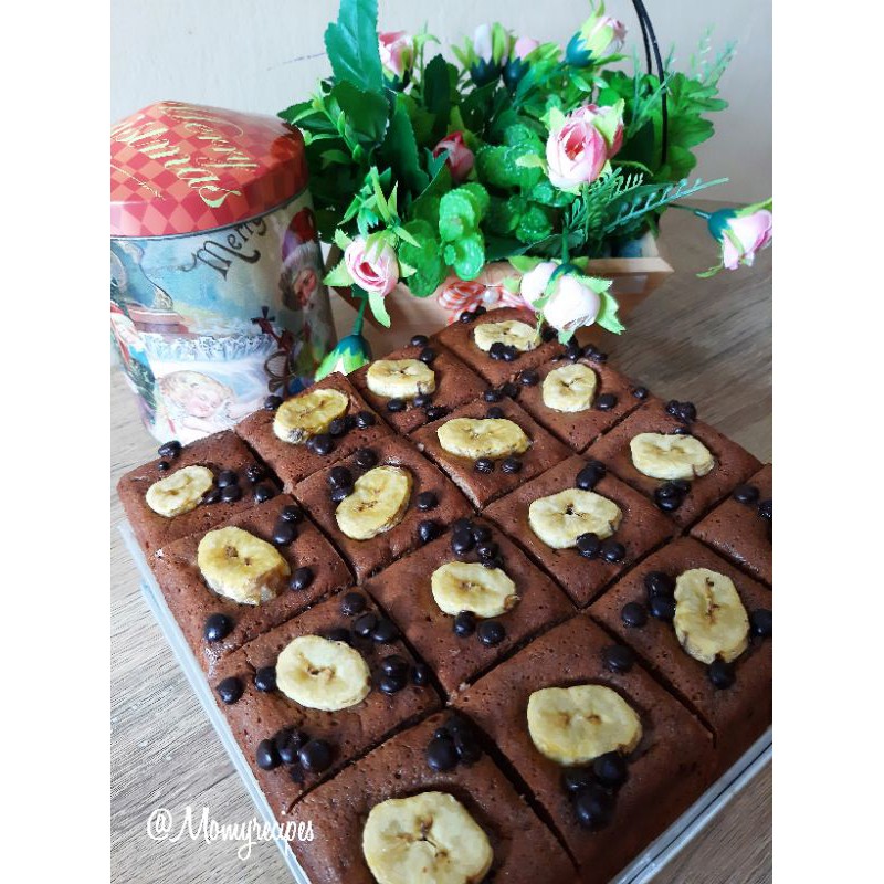 Cake pisang coklat lembut dengan aroma kayu manis yang wangi ditaburi dengan choco chip