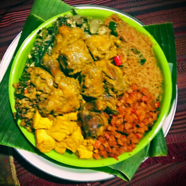 Nasi bancakan dengan lauk ikan ayam ingkung dan sayur tolo #nasi #enak