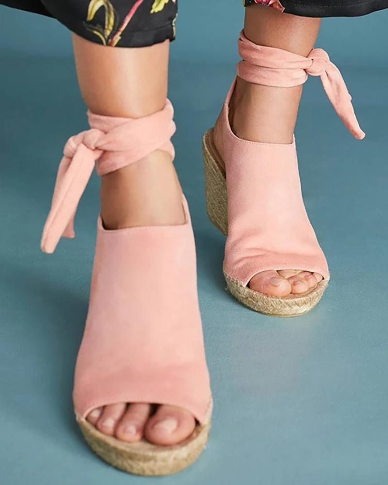 Bandage Design Espadrille Wedge Shoes, Pink