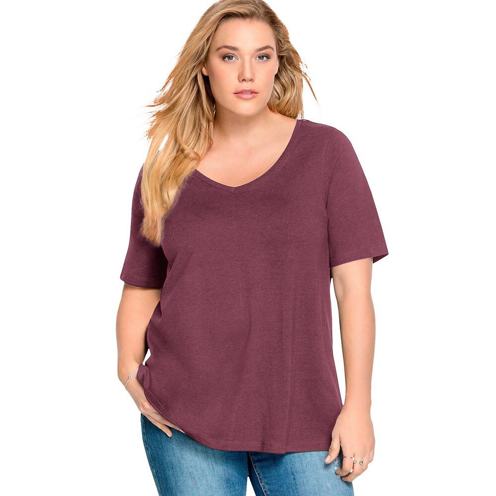 Женская туника трапециевидного силуэта с v-образным вырезом Ellos больших размеров, цвет Fig