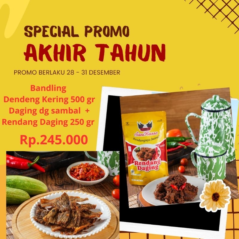 Promo akhir tahun bandling Dendeng kering daging 500 gr + sambal dan Rendang Daging 250 gr