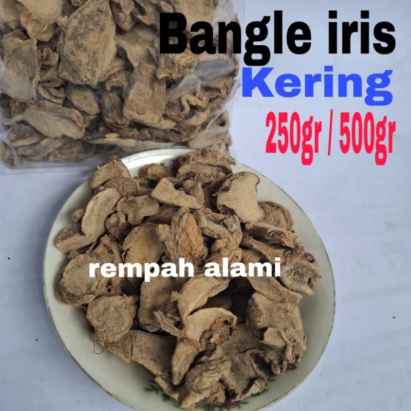 Bangle iris kering adalah produk yang dijual dengan berat bersih 250gr dan 500gr. Produk ini memiliki manfaat yang sangat baik untuk kesehatan tubuh. Bangle iris kering dapat membantu meningkatkan sistem kekebalan tubuh, membantu mengatasi masalah pencernaan, dan membantu menurunkan tekanan darah.