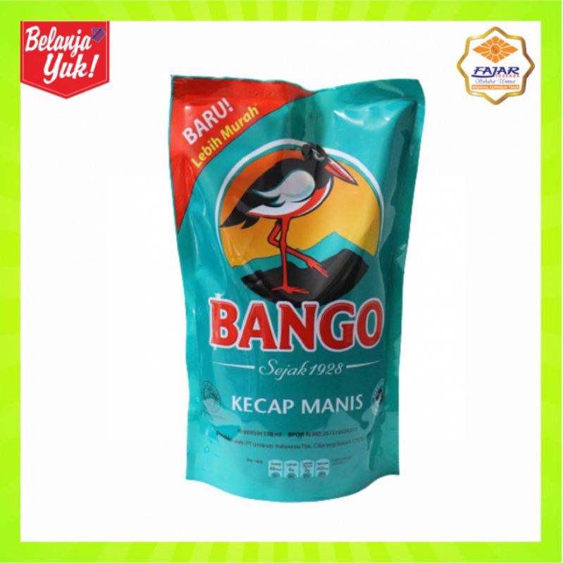 Bango Kecap Manis merupakan kecap manis yang terbuat dari bahan alami pilihan seperti kedelai hitam berkualitas, gula kelapa, garam, dan air. kedelai hitam pilihan difermentasi terlebih dulu beberapa bulan untuk kemudian melalui proses pengolahan khusus agar dapat berpadu sempurna dengan bahan-bahan lain untuk menghasilkan citarasa unik yang membuat Kecap Bango berbeda dari kecap-kecap lainnya. kecap ini hadir dalam kemasan pouch praktis yang memudahkana Anda untuk menyajikan hidangan istimewa dengan rasa yang nikmat.