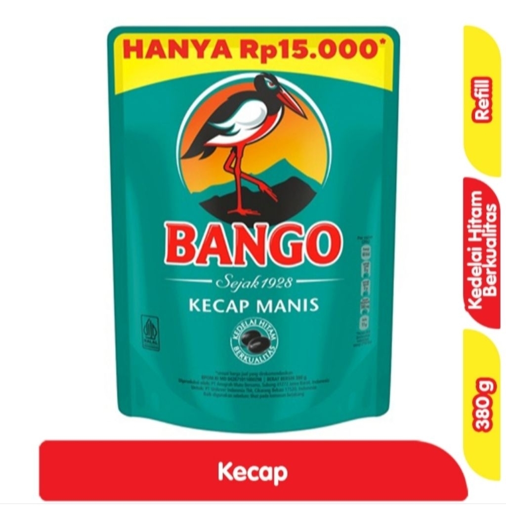Bango Kecap Manis Refill 380 g merupakan produk kecap manis yang diracik dari kedelai hitam malika unggulan yang difermentasi ibapa bulan secara cermat. Melalui proses pengolahan khusus agar berpadu sempurna dengan bahan-bahan lain yang menghasilkan cita rasa unik. Membuat Kecap Bango berbeda dari kecap-kecap lain yang menggunakan kedelai kuning. Hadir dalam kemasan pouch/refill ukuran 380 g.