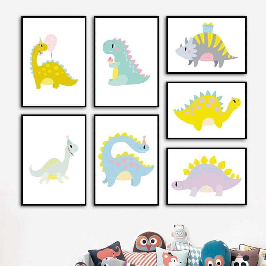 Детский сад плакаты на скандинавскую тему и принты, настенные панно, детская комната, милый динозавр, с днем рождения, вечеринка, настенная живопись на холсте
