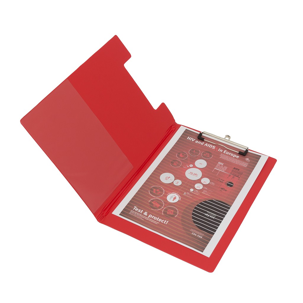 Clipboard yang dilengkapi dengan cover / penutup, kantong pada bagian dalam, dan tempat pen. Warna: