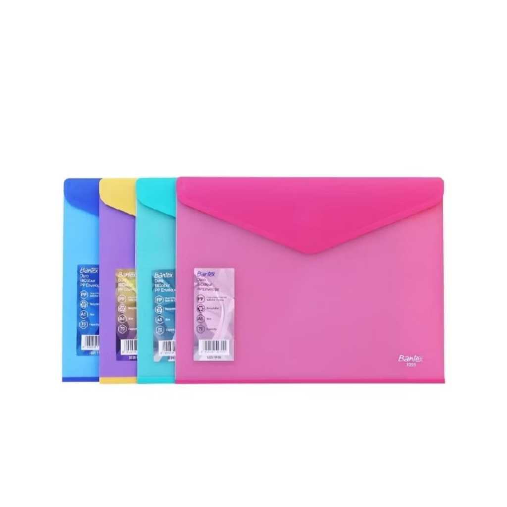 Bantex Duro Bi-Colour PP Envelope adalah map folder dengan penutup model seperti amplop dengan bahan plastik dua warna berkualitas terbaik untuk menyimpan dan melindungi dokumen anda.