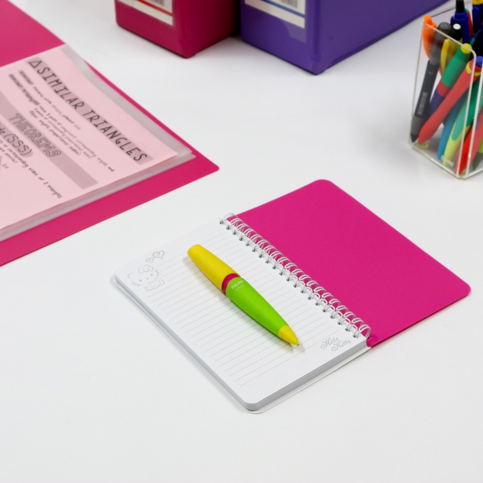 Buku catatan dengan cover solid, memungkinkan anda untuk mencatat sambil berdiri / tanpa alas. Menggunakan kertas istimewa dan di design hello kitty yang lucu, melengkapi alat tulis anda semakin berwarna.
