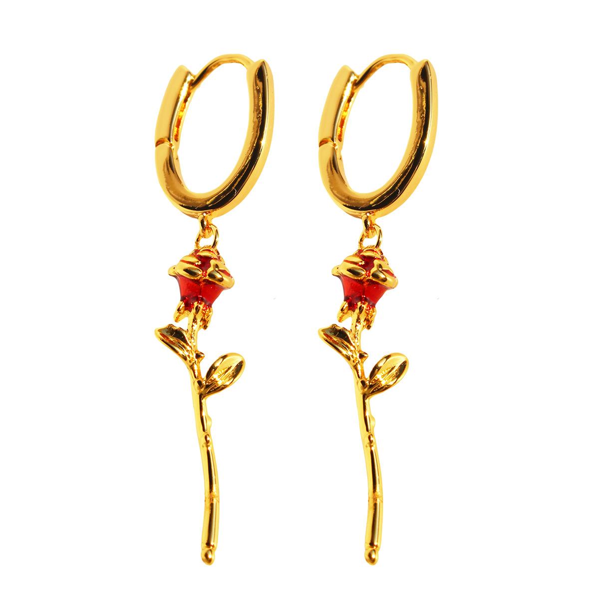 Baoli Оригинальные литературные и ретро эмалевые красные розы серьги женские модные U-образные застежки для ушей новые китайские серьги 147