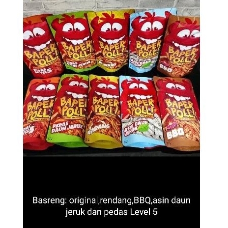 Baper Pol adalah bakso goreng (Basreng) dengan rasa original, rendang, BBQ, asin daun jeruk, dan pedas level 5. Semua varian memiliki rasa yang gurih dan lezat
