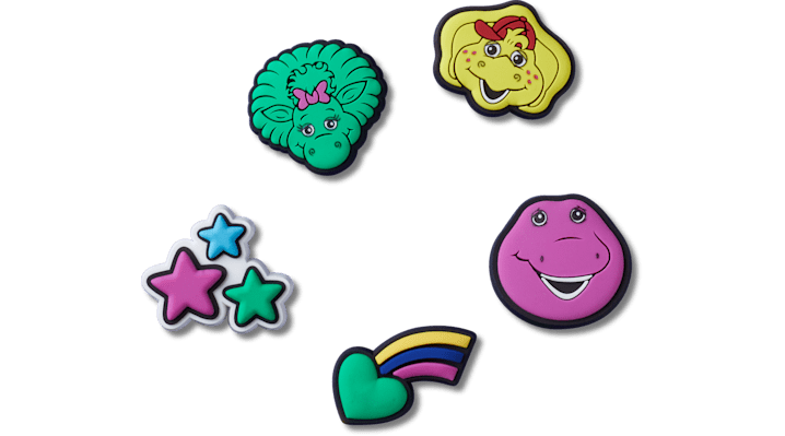 Pop some personality into your shoes with these Barney 5 Pack Jibbitz™ charms. They’re the perfect addition to your favorite pairs of clogs, slides, and more.Not a toy. Not intended for children under 3 years of age.