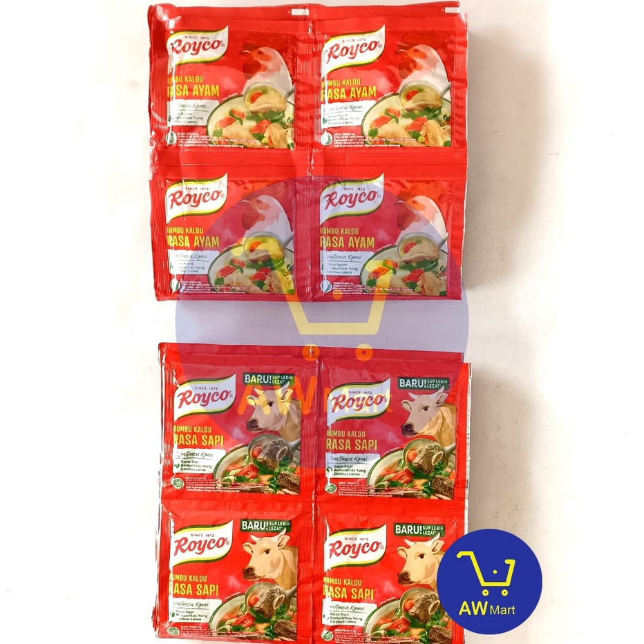Baru ROYCO RENCENGAN (12'S X 8GR) - ALL VARIAN - SAPI & AYAM SH-01-9-23 ROYCO RENCENG (12'S X 8GR) VARIAN SAPI DAN AYAM Netto: 12 SACHET X 8 GRAM = 96gr Berat Kemasan/ packaging: 150gr PENTING!!!! Kami hanya kirimkan produk sesuai varian yang telah Anda pilih, kami tidak mengirim produk dari keterangan yang dicantumkan/melalui Chat saja karena STOK SESUAI APLIKASI! STOK SELALU READY SESUAI APLIKASI! Terimakasih! **packing dengan bahan yang ada (kertas/koran/karton tipis/plastik saja), mau aman silakan tambahkan bubble wrap dan kardus. kerusakan bukan menjadi tanggung jawab kami. terima kasih. :) Pembelian PER dus gratis kardus Note: a. Stok selalu tersedia selama masih bisa di check out ya kakak". b. Order sebelum jam 12 siang akan diproses hari itu juga. Setelah jam 12 siang, akan masuk ke hari berikutnya, ya. ------------------------------------------------------------------------------------------------------------------------------------ Dear customers!! Kami sangat senang bisa melayani kebutuhan kalian semua. :) Silakan baca ketentuan berikut sebelum order agar tidak terjadi kesalahpahaman, ya :) 1. Pengiriman dalam jumlah banyak bisa menggunakan Go-Send/Grab INSTANT agar produk lebih aman. 2. Pengemasan dengan menggunakan bahan yang ada (kertas/koran/karton tipis/plastik saja) 3. Untuk penambahan packaging bubble wrap silakan order 4. Untuk penambahan packaging kardus silakan order 5. TANPA penambahan packaging kardus, segala kebocoran & Kerusakan TIDAK akan kami refund/ganti rugi. 6. Hadiah dari pabrik yang bocor tidak kami refund. 7. Terimakasih atas kepercayaannya, dan selamat menikmati berbelanja di AW Mart! Kepuasan Anda adalah yang utama bagi kami :) - Fast respon jam kerja Senin - Sabtu pukul 8.00 - 16.00, Minggu atau hari libur Off - Mohon mencantumkan warna/gambar/varian pilihan dan cadangannya (jika ada) di kolom pemesanan ya. Jika tidak mencantumkan pilihan, maka akan kami kirimkan sesuai stok yang ready!!! - Pengiriman pada Hari yang sama (malamnya). - Jika barang yang di pesan kosong dan tidak ada respon selama 1x24 jam maka akan di kirim secara random. - Periksa kembali NOMOR HP (TELP) & ALAMAT LENGKAP. Guna mempercepat dan memperlancar pengiriman. - BARANG YANG SUDAH DI BELI TIDAK BISA DI KEMBALIKAN. - Gudang kita ada di Beberapa Alamat Jabodetabek... Jadi pengiriman tidak selalu sesuai alamat toko ini yaaa.. >>>> MEMBELI = SETUJU