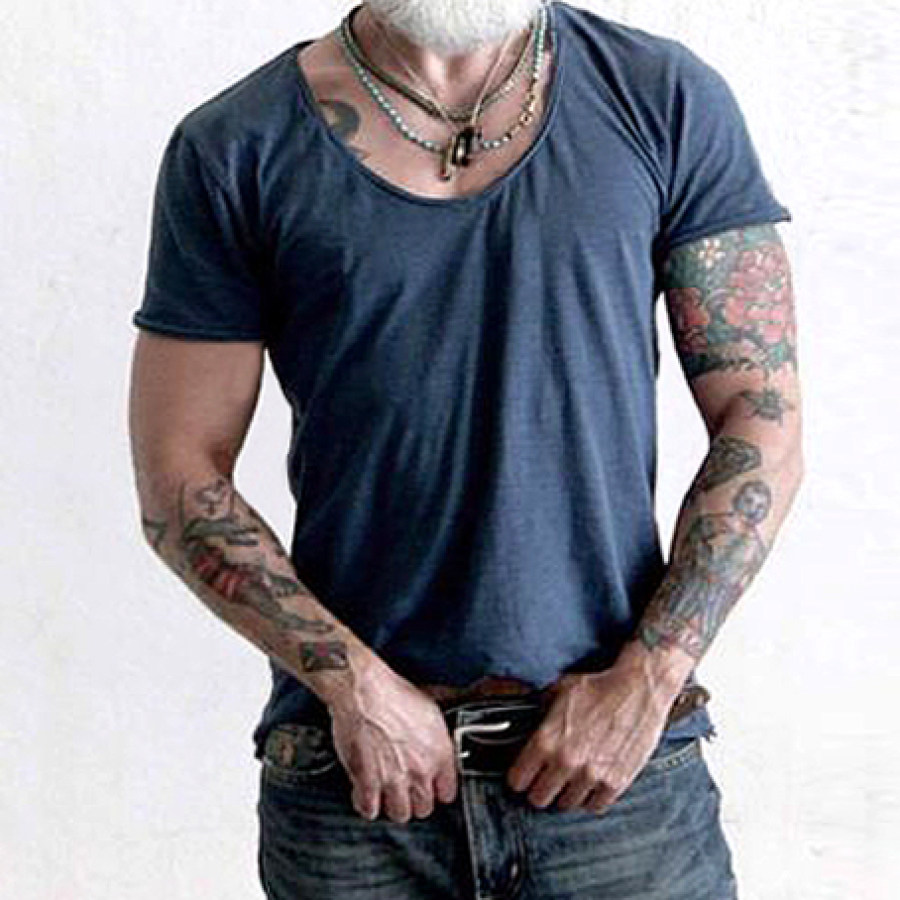 Basic Rundhals-Baumwoll-Kurzarm-T-Shirt Für Herren