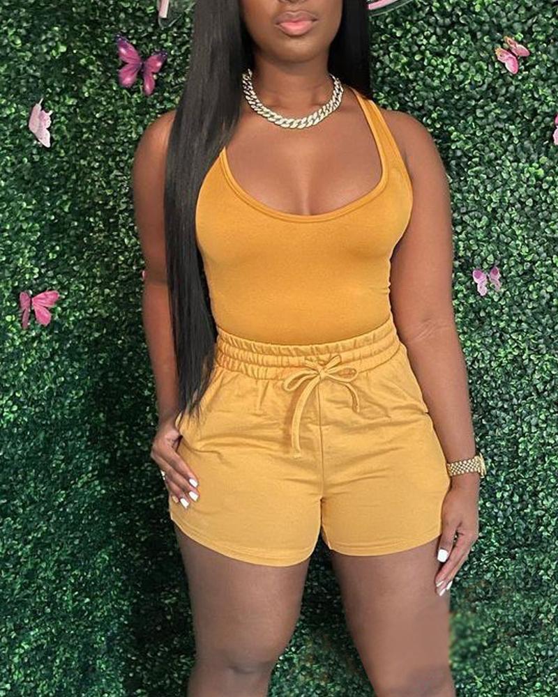Basic Tank Top & Drawstring Shorts Set, Yellow