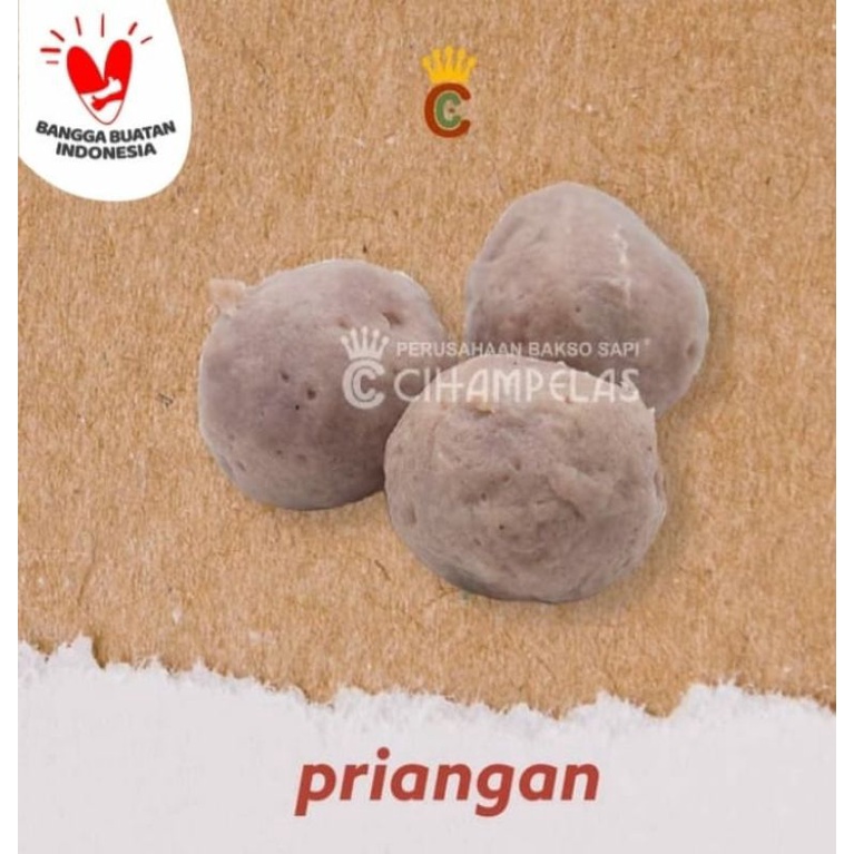 Baso sapi Cihampelas varian Priangan merupakan baso polos dengan tekstur paling kenyal terbuat dari daging sapi pilihan halal dan sehat.