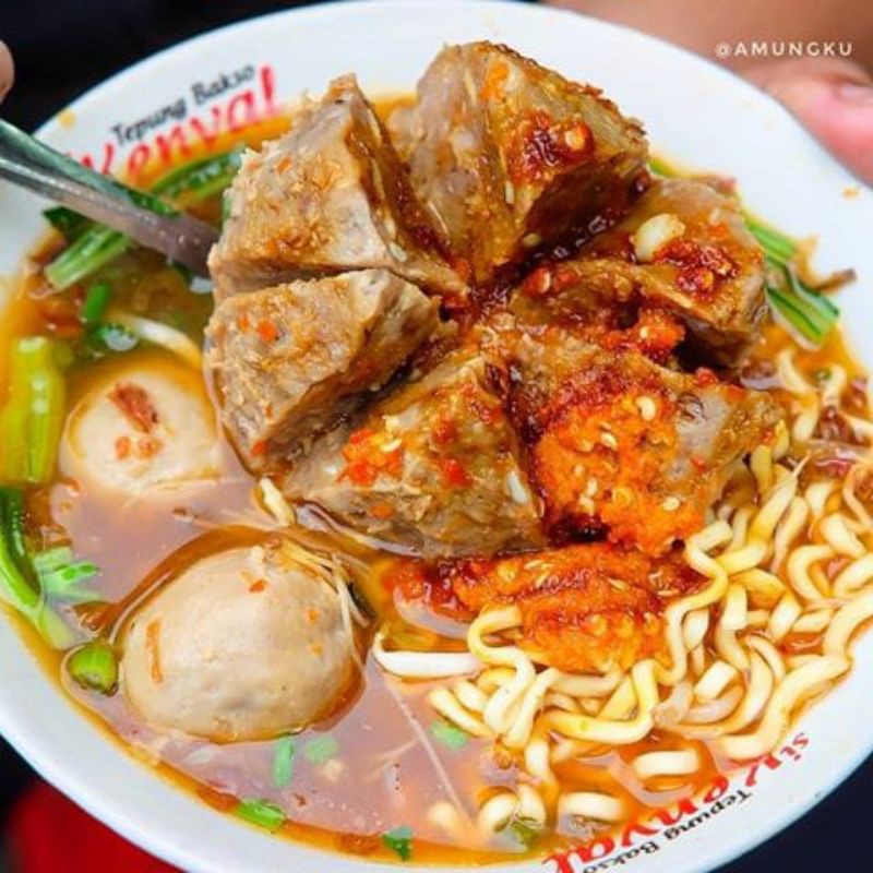 Berisi 2 baso urat pedas dan baso kecil halus plus indomie