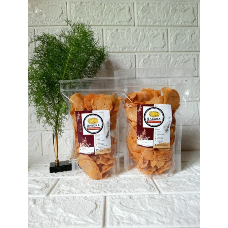 Keripik basreng yang crunchy dengan rasa smoky barbeque ditambah rasa pedas bikin lidah bergoyang