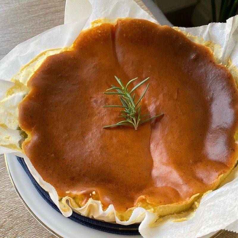 Nikmati kelezatan cheesecake yang unik dengan rasa creamy dan tekstur lembut yang meleleh di mulut. Ciri khas permukaan yang karamelisasi memberikan sentuhan rasa smoky dan manis yang seimbang sempurna. Cheesecake ini dipanggang hingga bagian atasnya berwarna keemasan gelap, menciptakan lapisan luar yang sedikit renyah namun tetap lembut di bagian dalam. Setiap gigitan menawarkan kombinasi rasa gurih dari cream cheese berkualitas dan sedikit sentuhan manis yang tak berlebihan, cocok untuk segala momen spesial atau sekadar memanjakan diri.