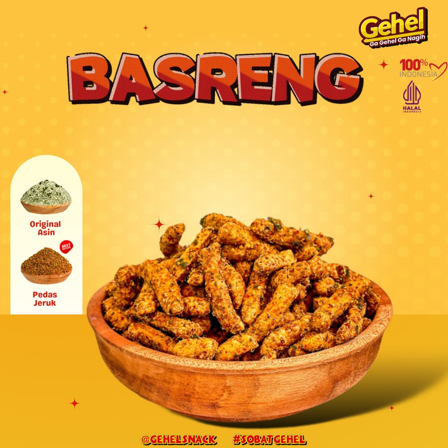 Basreng adalah makanan yang terbuat dari ikan pilihan , super enak sangat cocok untuk kamu yang suka nonton dan nogkrong pecinta makanan pedas merapatt!! .Gak suka pedas?tenang,kamu bisa pilih varian lainnya,disini ada dua varian rasa: