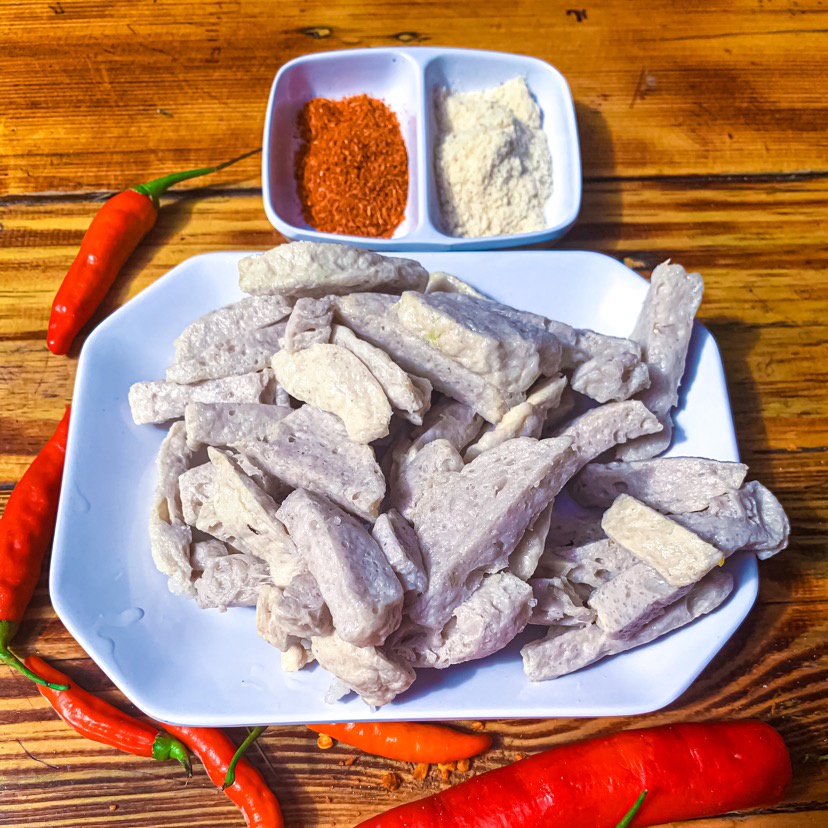 dilengkapi bumbu pedas dan asin bubuk