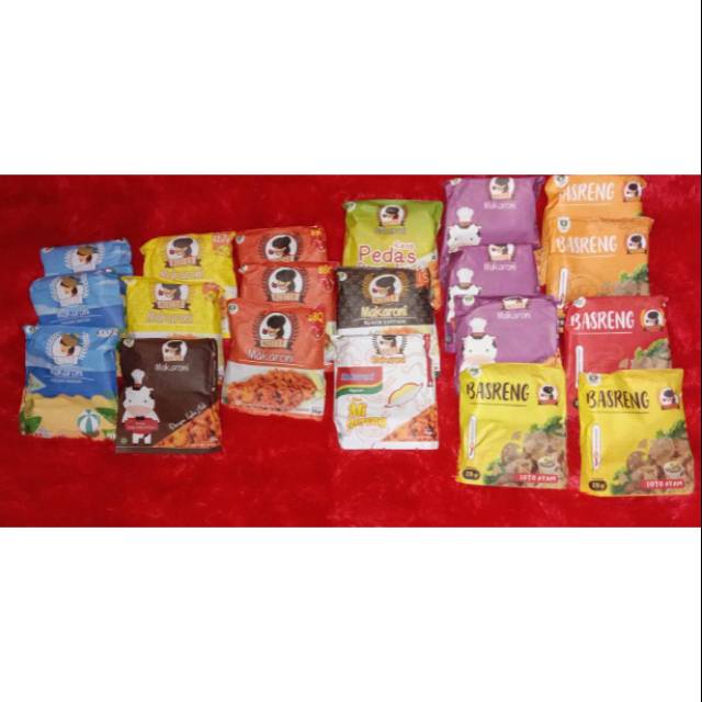 Varian rasa : bbq, rumput laut,indomie goreng,sapi lada hitam,jagung bakar,pedes daun jeruk