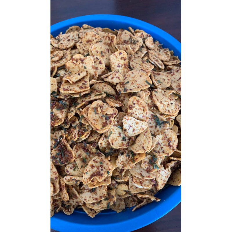 Basreng Pedas Daun jeruk yang dibuat oleh produksi Rumahan