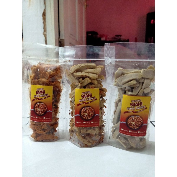Basreng yang super renyah + gurih dengan varian pedas dan original,pas bgt buat nemenin makan pake nasi anget, dibuat lauk saat makan