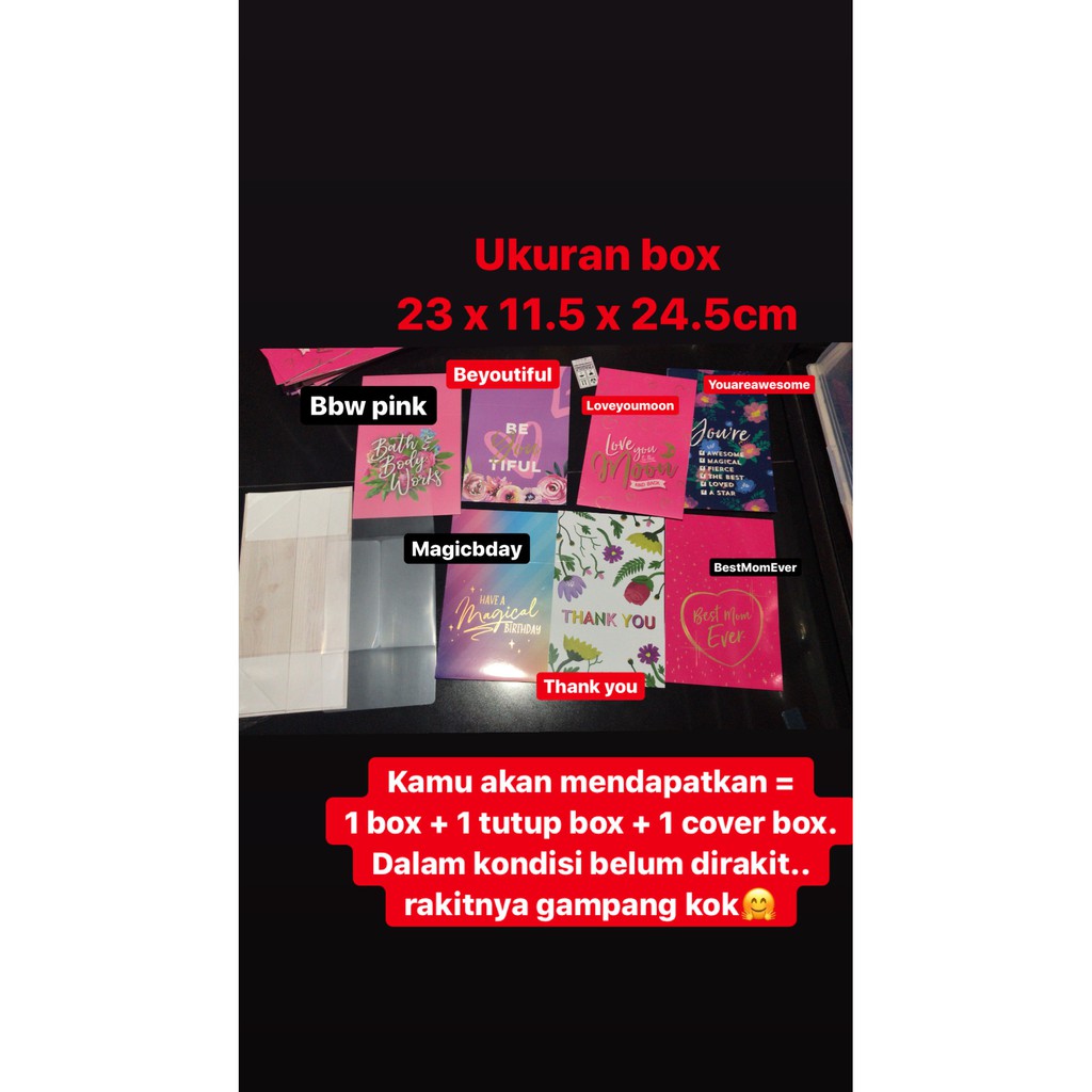 1 box + 1 tutup box transparan + 1 cover box (sesuai pilihan)