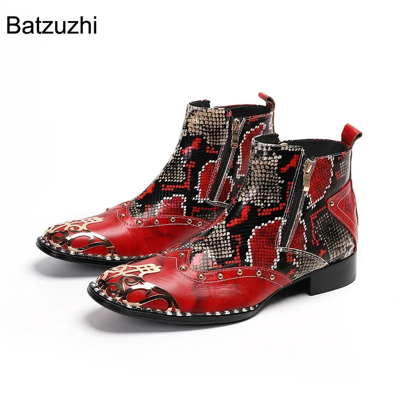 Batzuzhi Новые мужские ботинки ручной работы с квадратным носком красные ботинки из натуральной кожи мужские короткие рыцарские ботинки на молнии женские и свадебные ботинки