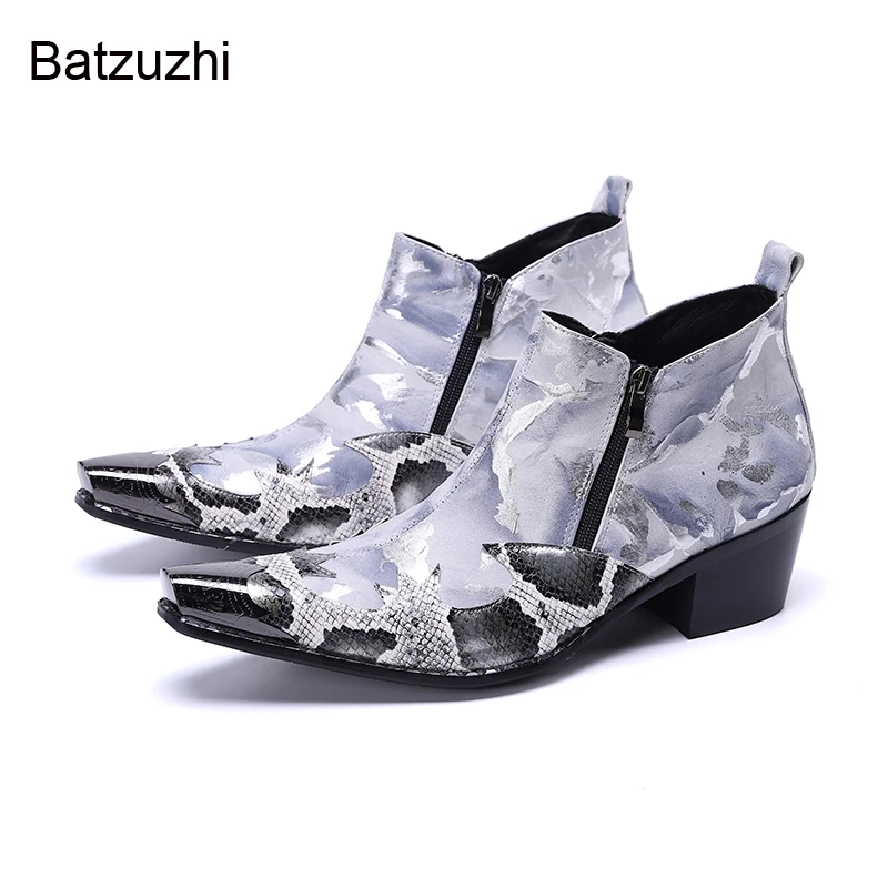 Batzuzhi серые ботинки для вечерние НКИ/свадьбы, мужские ботинки на высоком каблуке 6,5 см, мужские ботинки из натуральной кожи