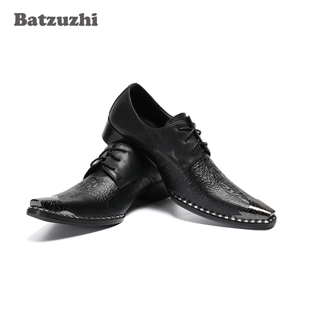 Batzuzhi черного цвета, на шнуровке, кожа, Обувь в деловом стиле мужская деловая обувь кожаные модельные туфли Туфли без каблуков Chaussures Hommes, больших размеров US6-12,EU38-46