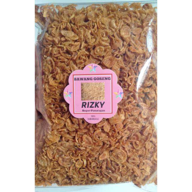 Bawang Rizky 100 % Bawang asli di kupas dengan Bersih di Goreng lalu di spinner sehingga menghasilkan Bawang Goreng yang Renyah Gurih kering sehingga awet dan tahan lama. Bawang Goreng Rizky di kemas dengan tampilan yang bervariasi dalam berbagai pilihan sehingga konsumen dapat memilih sesui dengan kebutuhan.