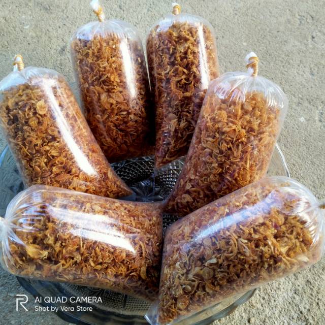 Bawang merah goreng, 1/2 kg mentah lalu digoreng jadi 1 bungkus seperti di gambar, harga 35.000