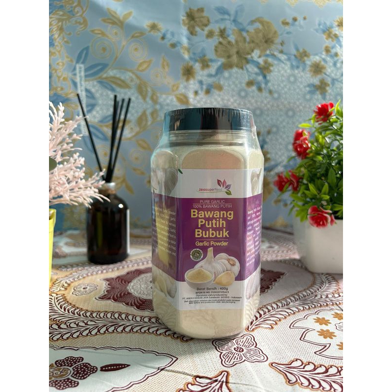 Bawang Putih Bubuk dibuat dari 100% bawang putih sehingga rasanya sangat lezat untuk campuran bumbu masakan. Bawang Putih Bubuk dari Javasuperfood sangat praktis untuk digunakan sebagai bumbu pada aneka masakan seperti nasi goreng, mie goreng, sup, dan lain-lain.