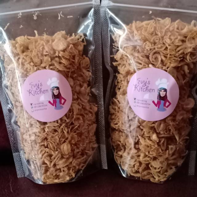 Bawang goreng dibuat menggunakan bawang pilihan, tanpa pengawet dan campuran apapun. Ukuran 100 gram