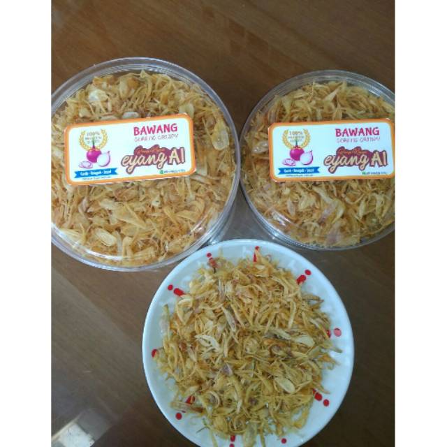 Bawang goreng Eyang Al 100% menggunakan bawang sumenep, enak untuk di tabur di masakan dan di tabur di atas nasi. Berat 200gr