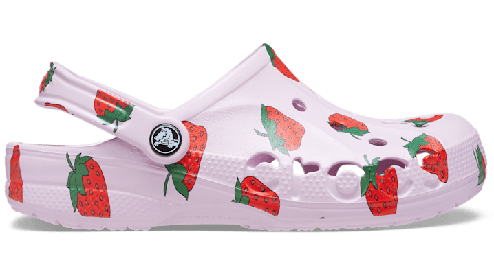 Designed For All-Day Comfort Similar to the Classic Clog but with a logo cutout around the toe box, the Baya Clog takes fun head-on with playful new graphics. Able to quickly shed water and debris, they’re the perfect pair to take to the party, to the pool, or anywhere you want to express your true colors. Baya Seasonal Printed Clog Details: New allover graphics Water-friendly and buoyant; weighs only ounces Easy to clean and quick to dry Pivoting heel straps for a more secure fit Customizable with Jibbitz™ charms Iconic Crocs Comfort™: Lightweight. Flexible. 360-degree comfort.