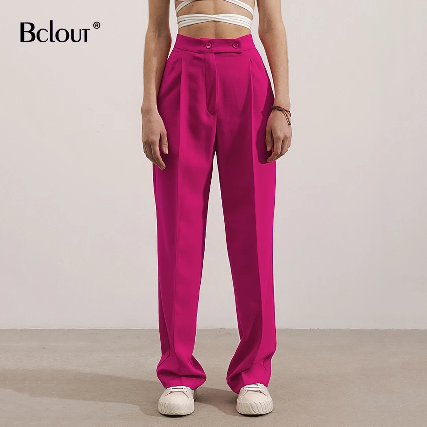 Bclout повседневные женские брюки с широкими штанинами осенние модные розовые длинные брюки с высокой талией женские уличные плиссированные ...