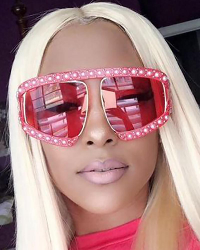 Beaded Big Frame Sunglasses, Red