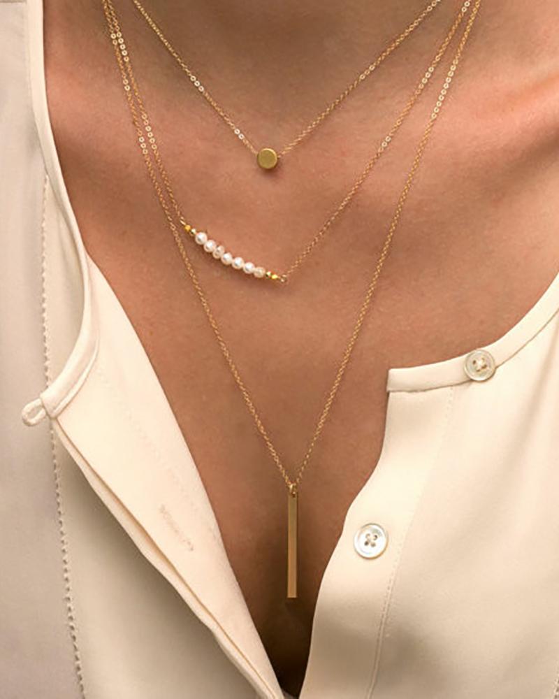 Beaded Geometry Pattern Layered Pendant Necklace, Gold