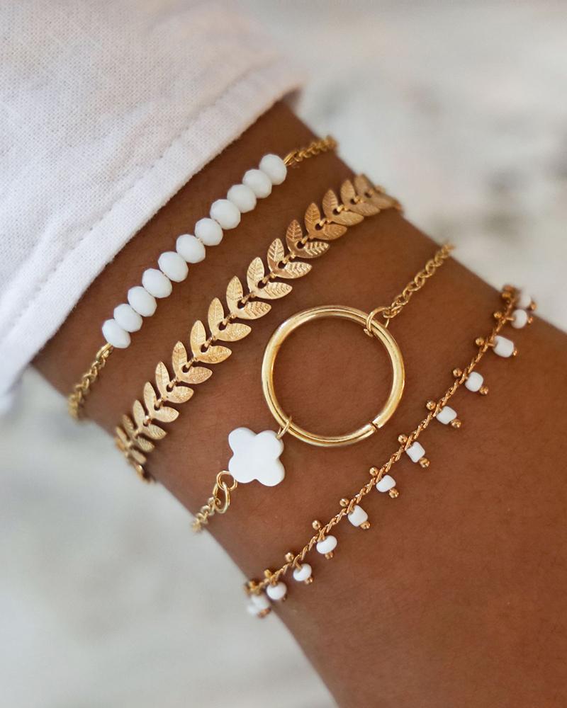 Beaded Leaf Pattern 4PCS Layered Bracelet, Gold