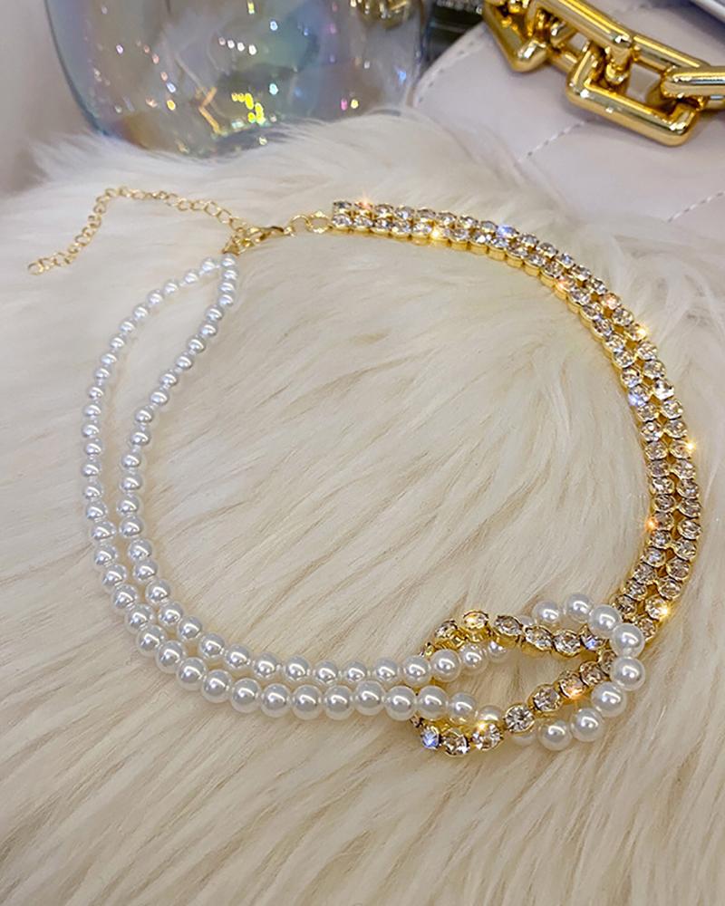 Beaded & Rhinestone Patch Linked Layered Necklace, Gold