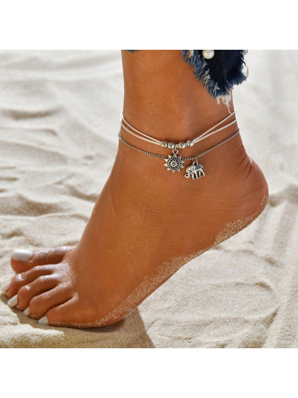 anklet,beads chain retro multi-layer anklets