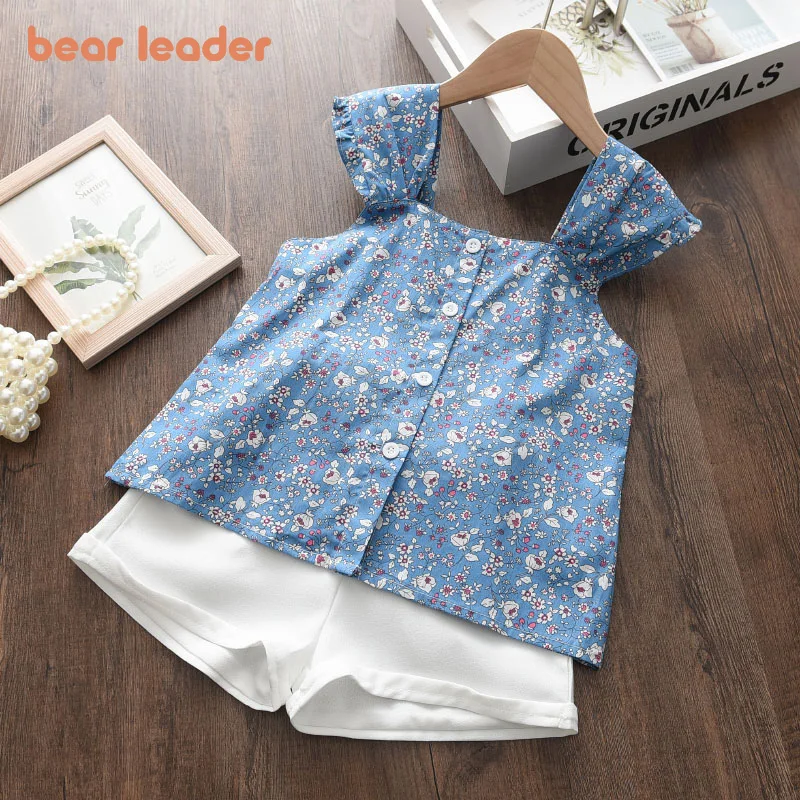 Bear Leader/Детские комплекты одежды с цветочным принтом для девочек летний детский топ без рукавов и шорты комплект из 2 предметов модный Детски...