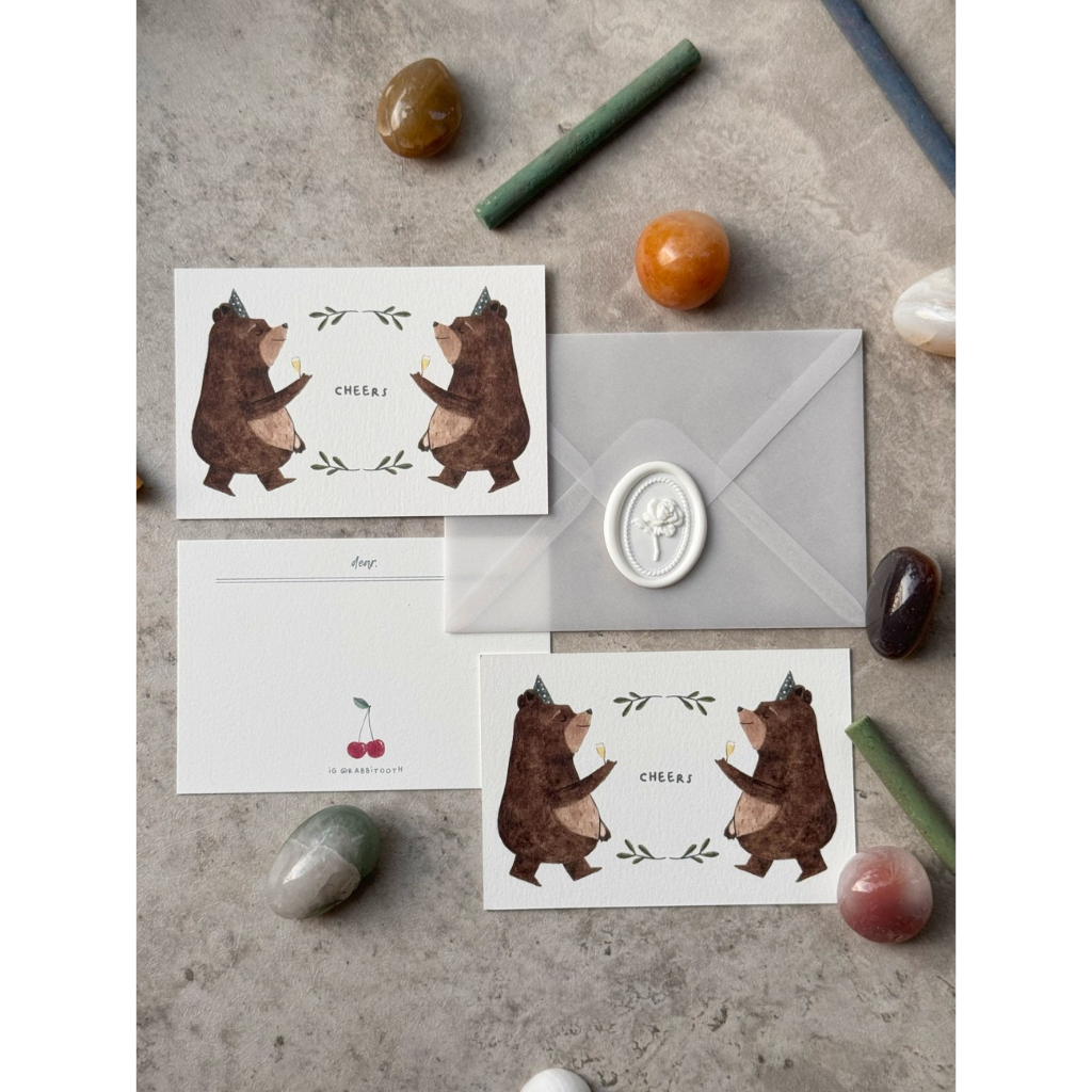 Comes in A7 size, the postcard is a set with translucent envelope.