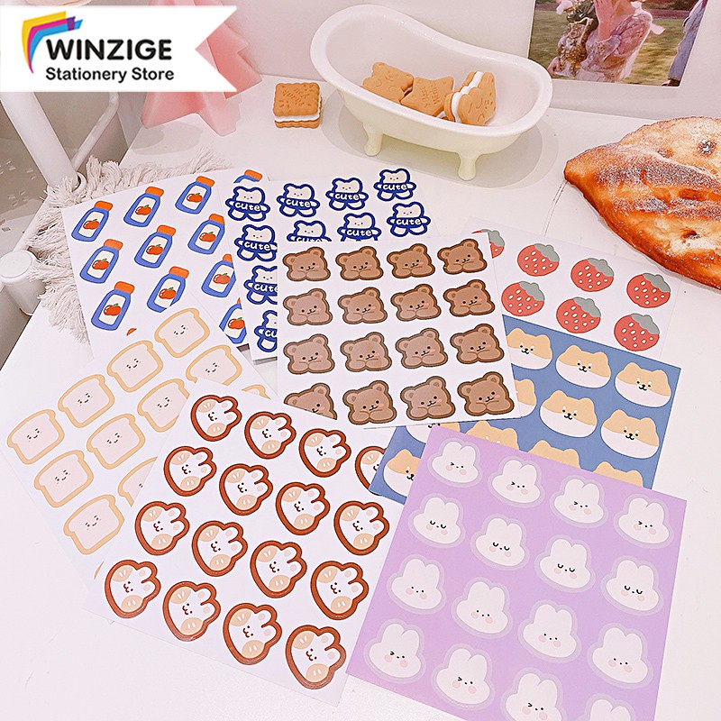 Bear Strawberry Rabbit Stickers Cute Cartoon Girls Sticker Set DIY Journal