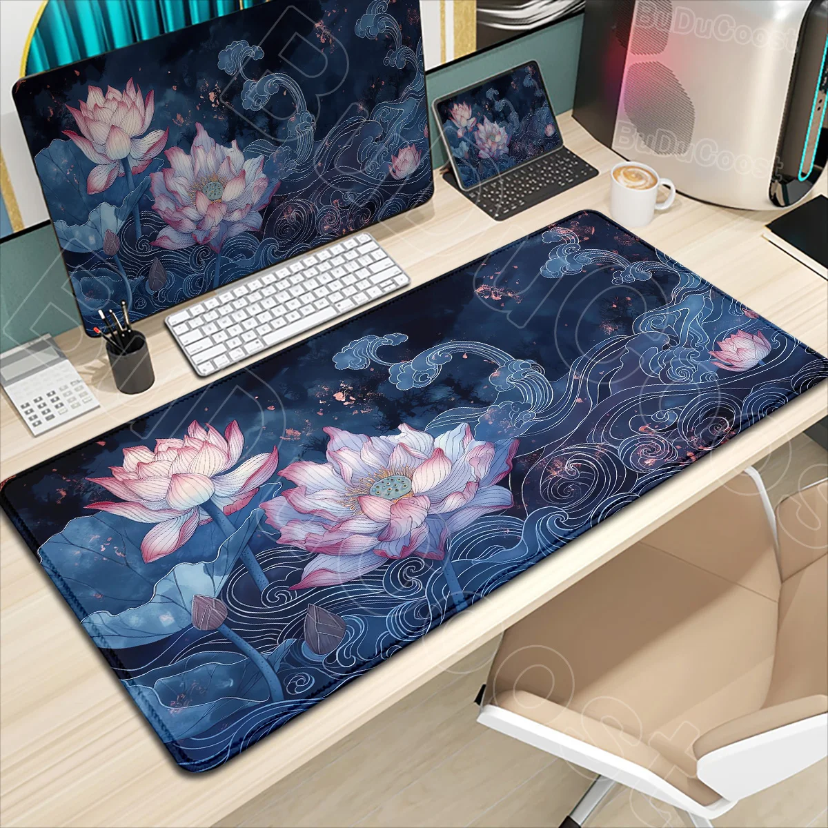 Beautiful Wallpaper Lotus Mouse PC Large Keyboard MousePad Gaming Rubber Lock Eage Desk Mat Computer Gamer Work Office Mause Pad