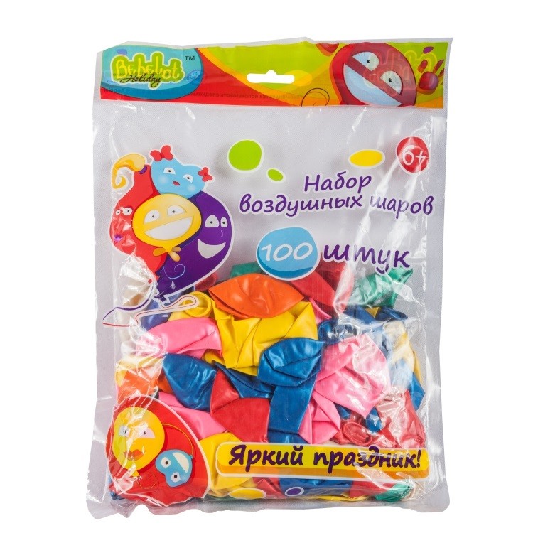 Bebelot Набор воздушных шаров, форма: круглая, 20см, разноцветный, 100шт. (00000078887), Набор воздушных шаров